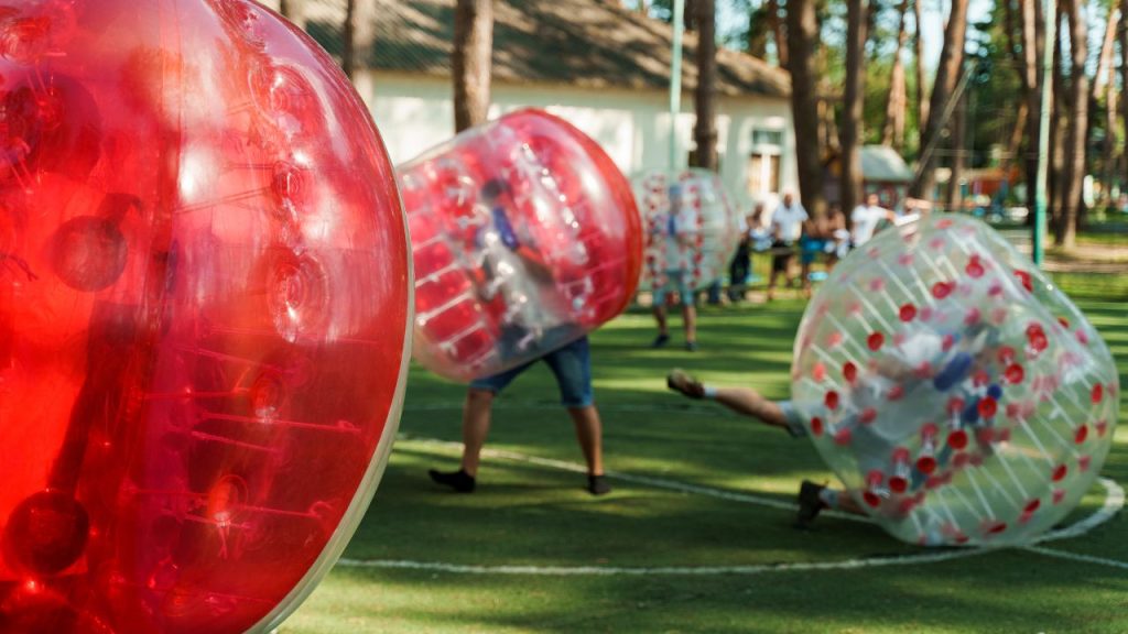 • Entra dentro de una gran bola y...choca, golpea, salta y disfruta jugando al fútbol de una forma diferente.